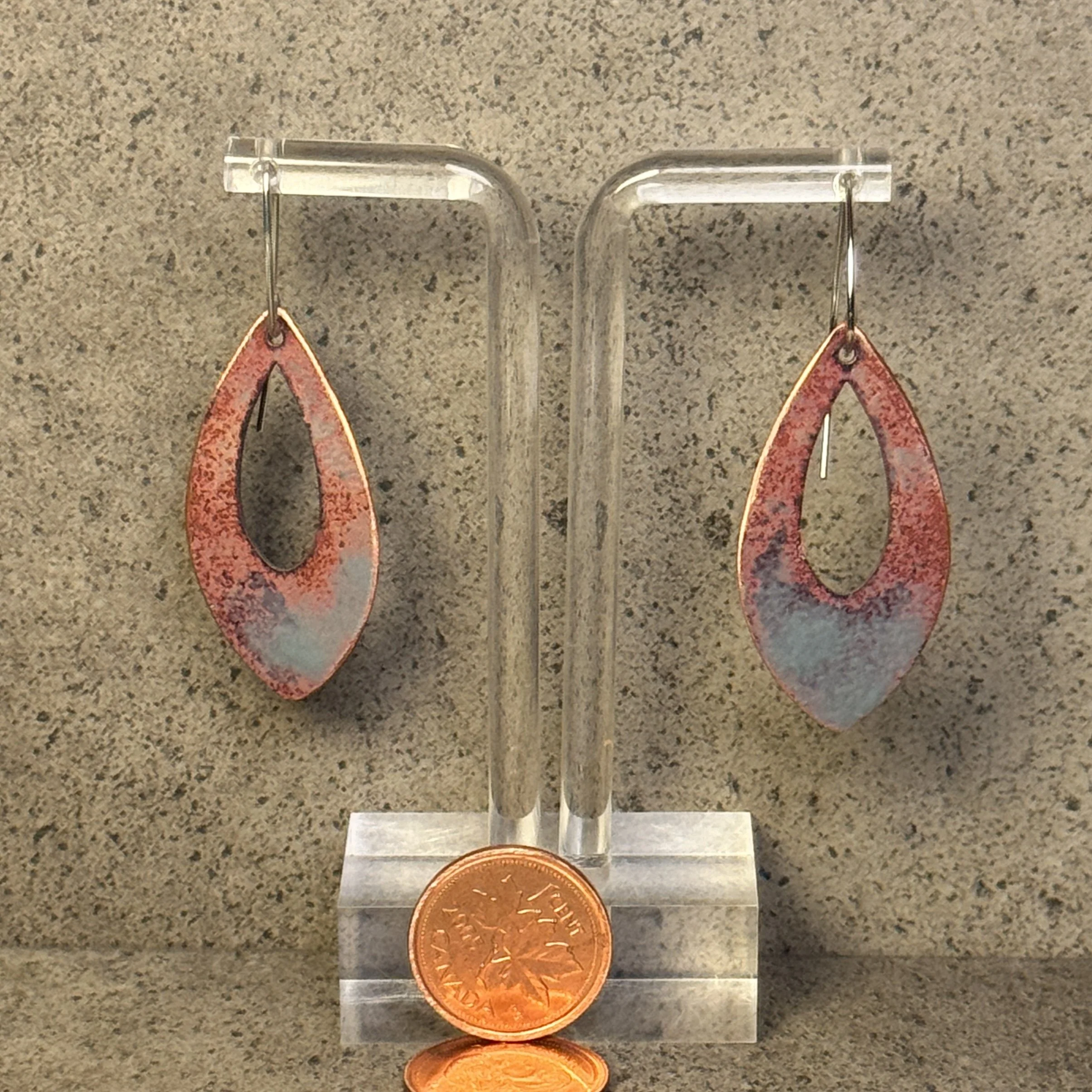 Earring wires: stainless steel, Dangle: copper finished with enamel.