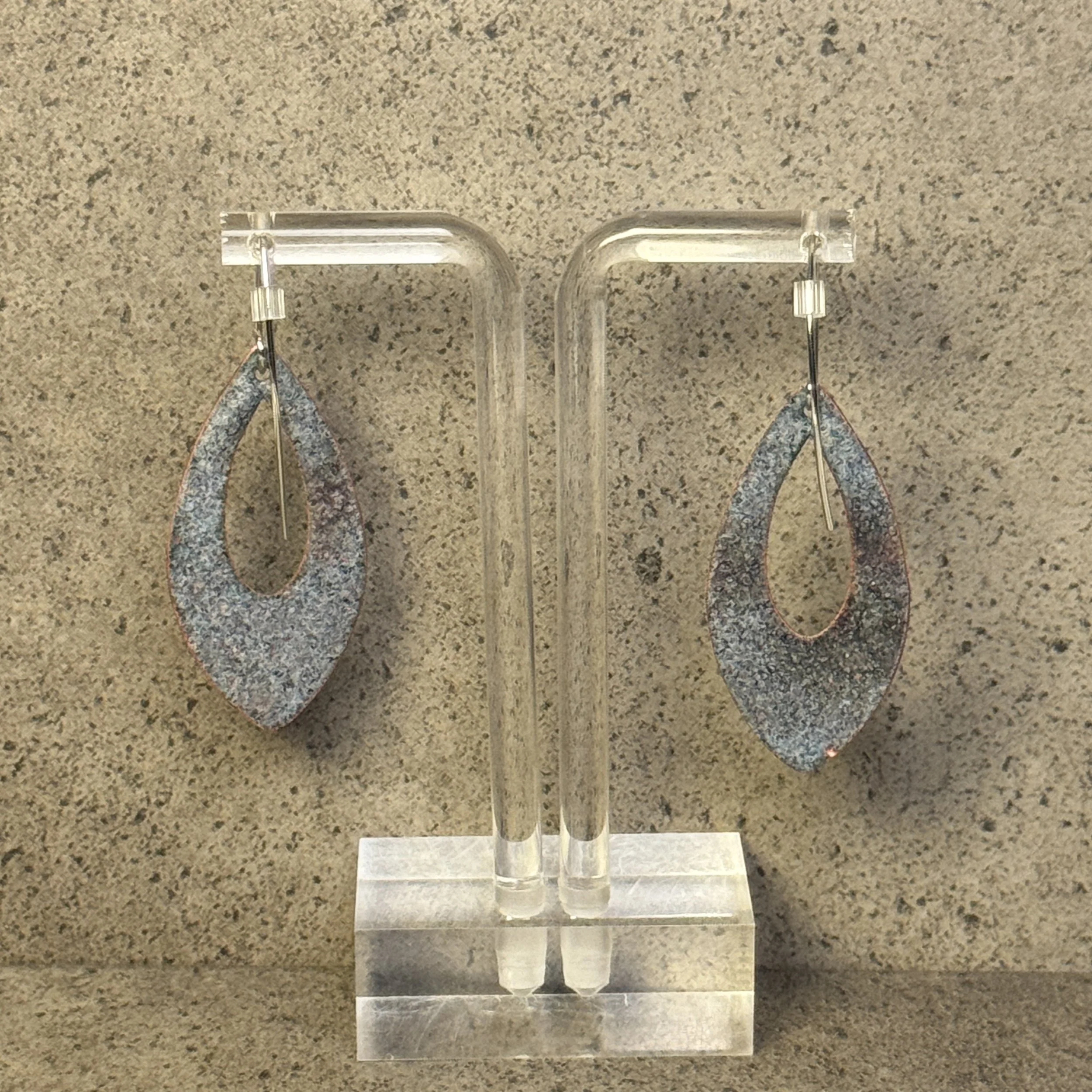 Copper and grey patterned enamel, counter enamel on back, copper shape earrings.
