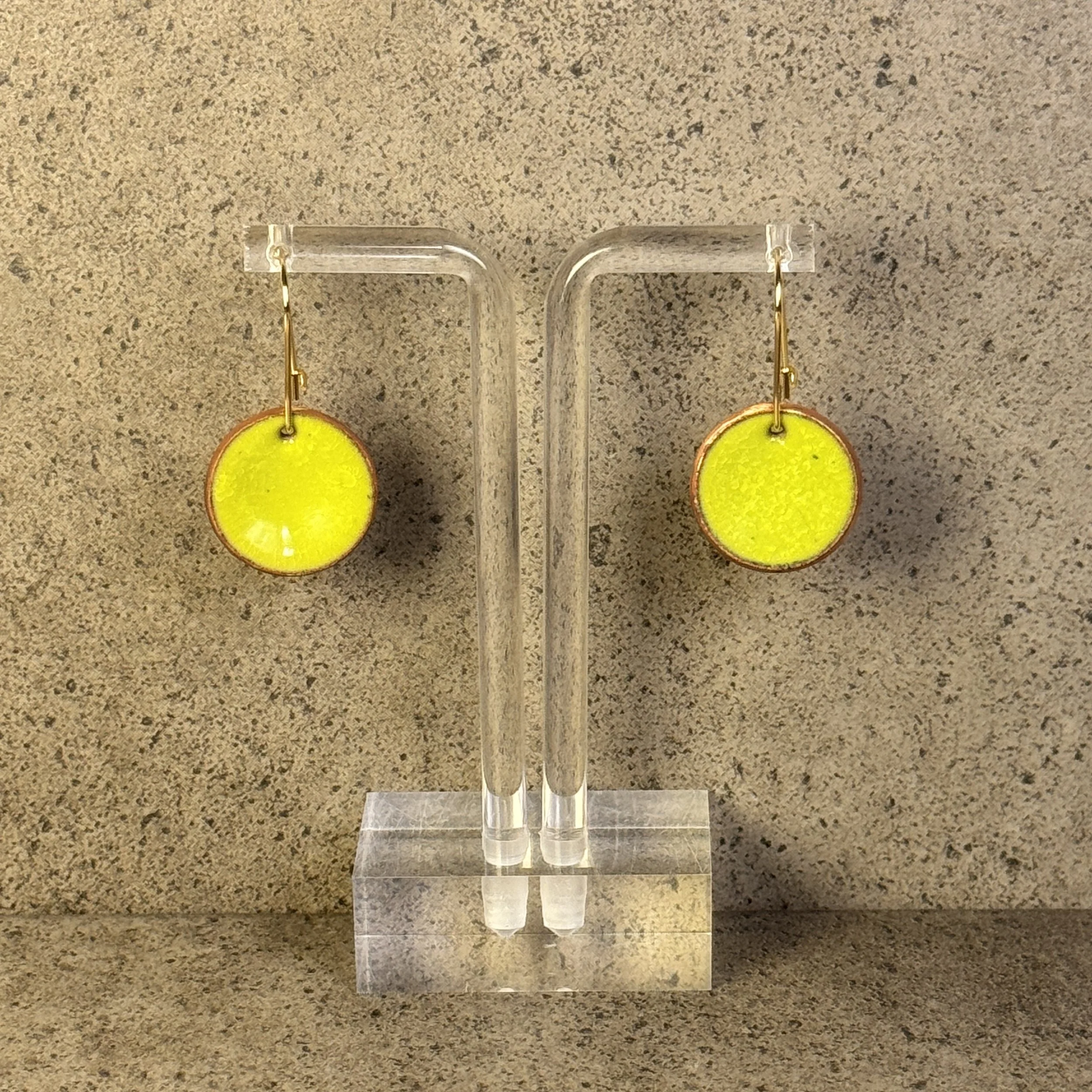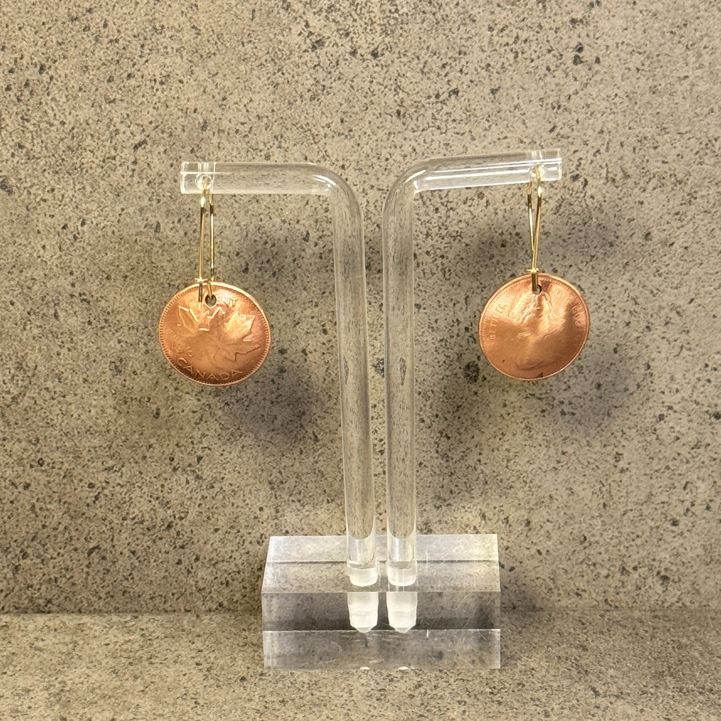 Earring wires: gold-coloured stainless steel, pennies:copper finished with enamel and lacquer.